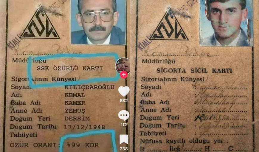 Şu sahtekarlığa bakın SSK müdürü iken kendine sakat kartı çıkarmış vergi vermemek için Kemal Kılıçdaroğlu.