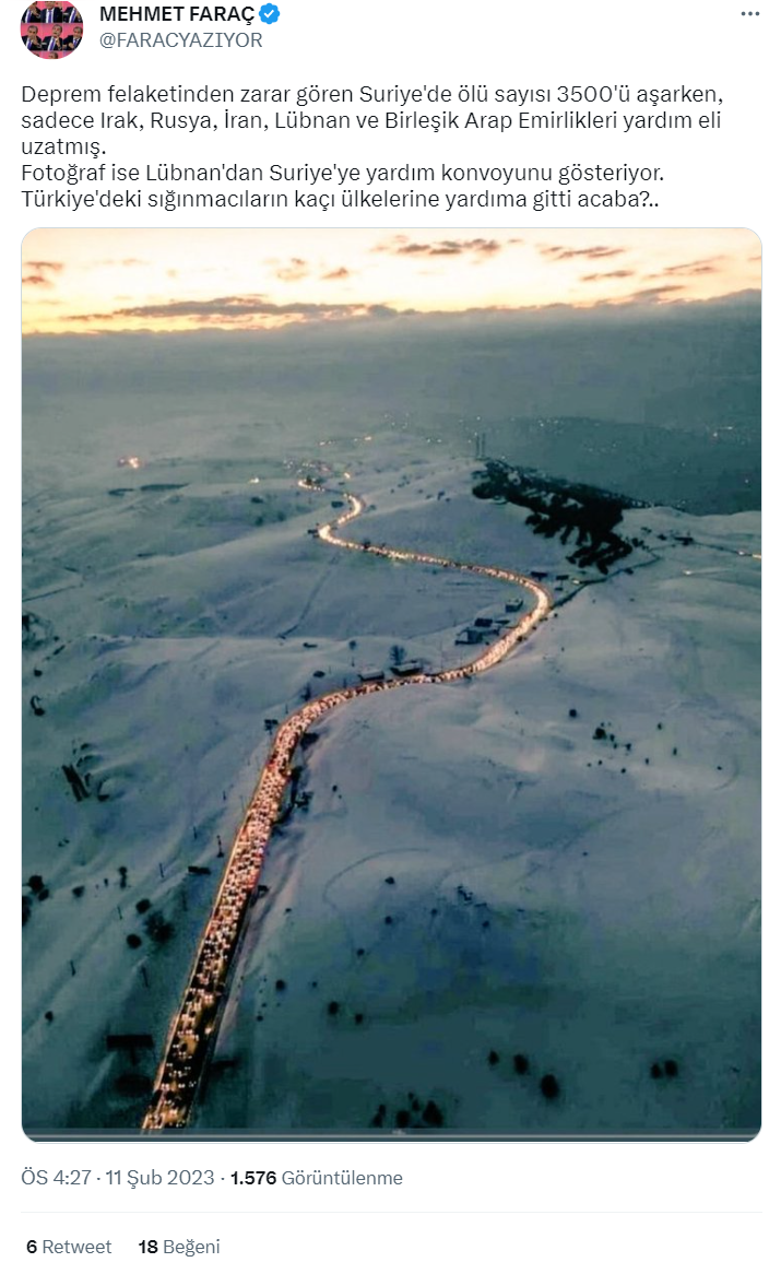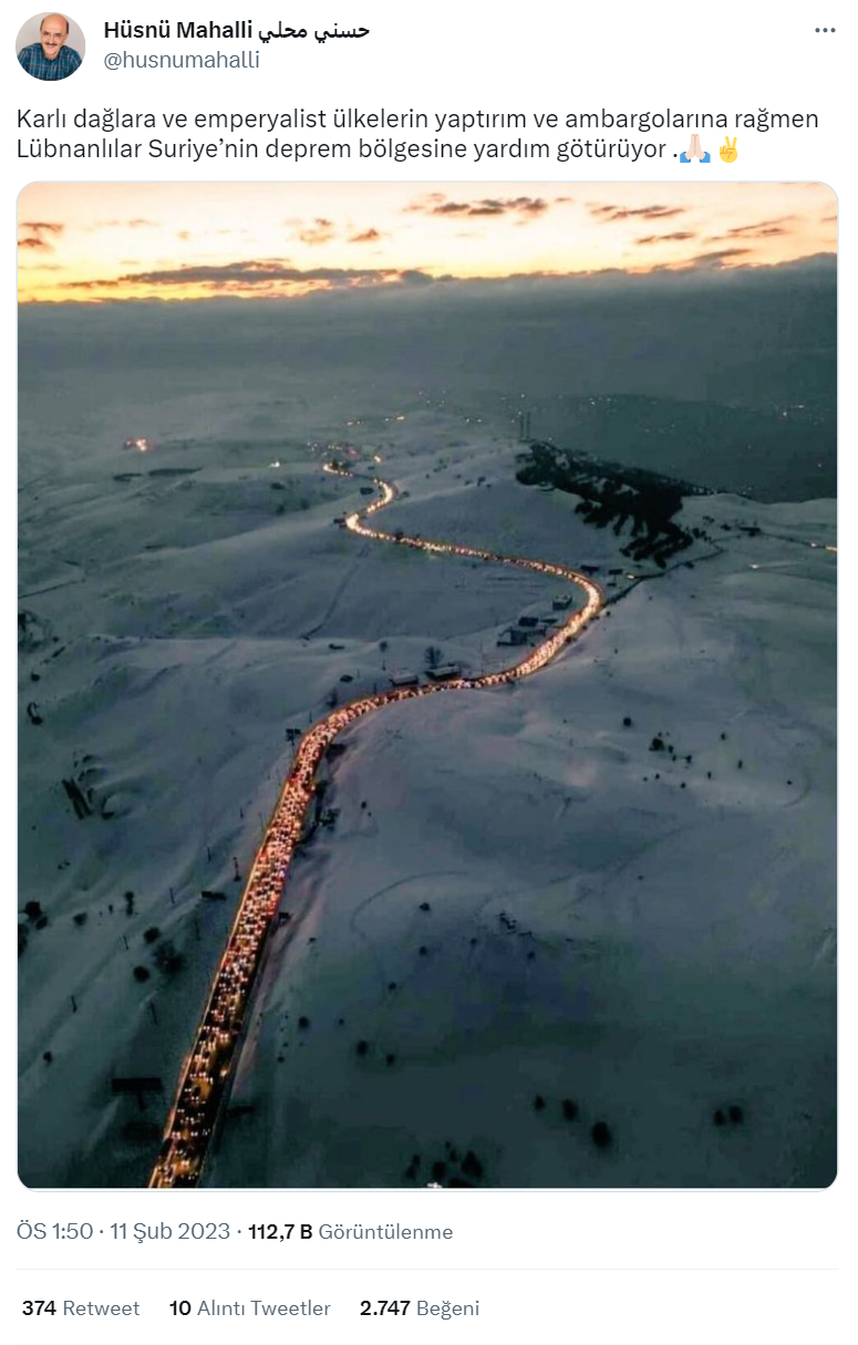 Fotoğrafın Suriye’ye deprem yardımı götüren Lübnan konvoyunu gösterdiği iddiası