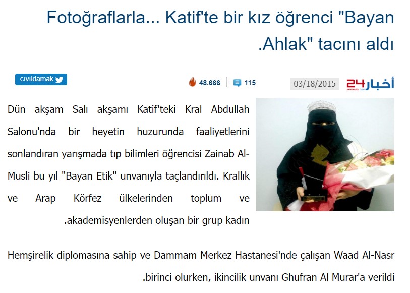 “Suudi Arabistan” güzellik yarışmasını ortadaki yarışmacı kazandı. Kendisini tebrik ediyoruz.. Çok da güzelmiş, maaşallah diyelim.