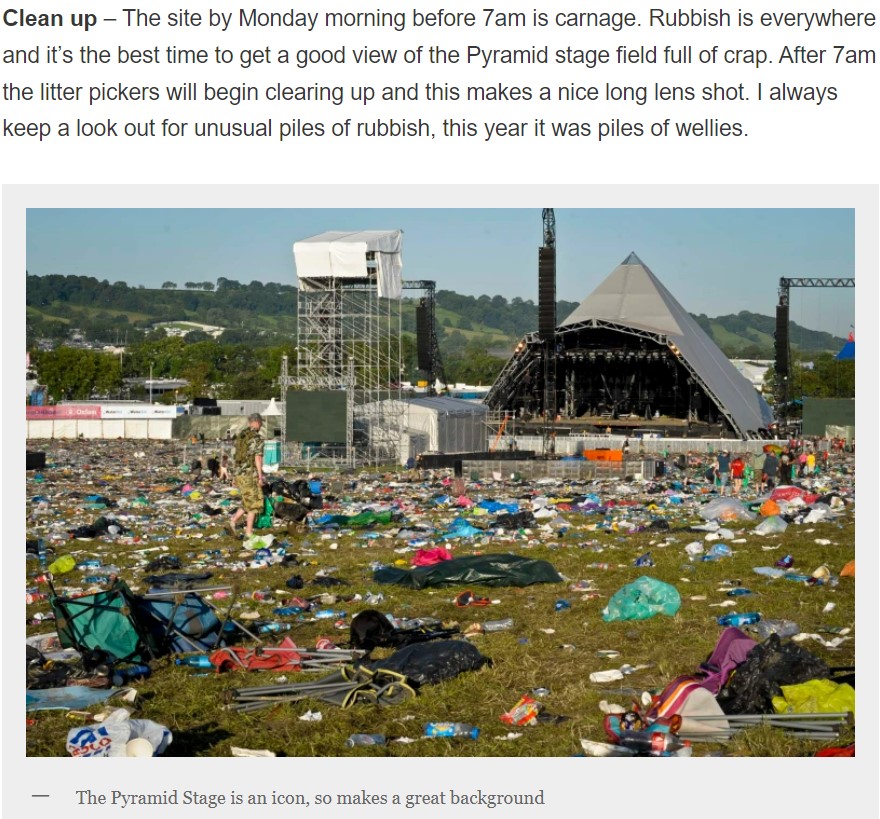 Bu yıl gerçekleştirilen etkinlik sonrasında gönüllüler tarafından çevre temizliği faaliyetleri yapıldığı görüntülere sosyal medyada erişilebiliyor. Festivaldeki atıklarla ilgili olarak geri dönüşümde kullanıldığı ve yeniden dönüştürüldüğü belirtiliyor. Independent basın kuruluşunda yer alan haber içeriğinde, binlerce geri dönüşüm gönüllüsünün katılımıyla alan temizliği yapıldığına değinilmiş. Bunun yanında geçen yıllara göre festival alanında bırakılan daha az atık ve çöp bulunduğuna dikkat çekilmiş. Çevreye karşı daha duyarlı ve bilinçli bir toplum hale gelindiğini gösteren bir durum olduğunu söyleyebiliriz.