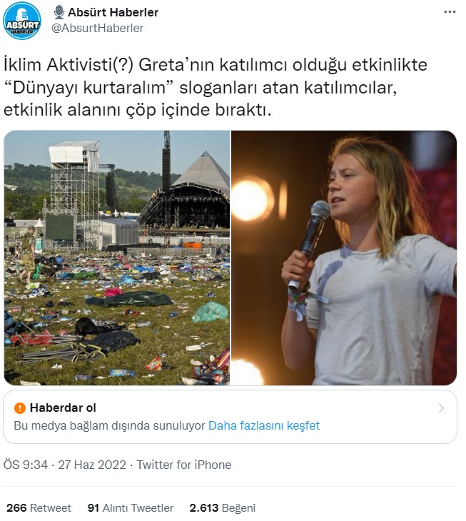Söz konusu iddia fotoğraflarında konu olan çevre aktivisti Greta Thunberg’in, Glastonbury Festivali’nde yaptığı açıklamalarda çekilen güncel görüntülere erişilebiliyor.
