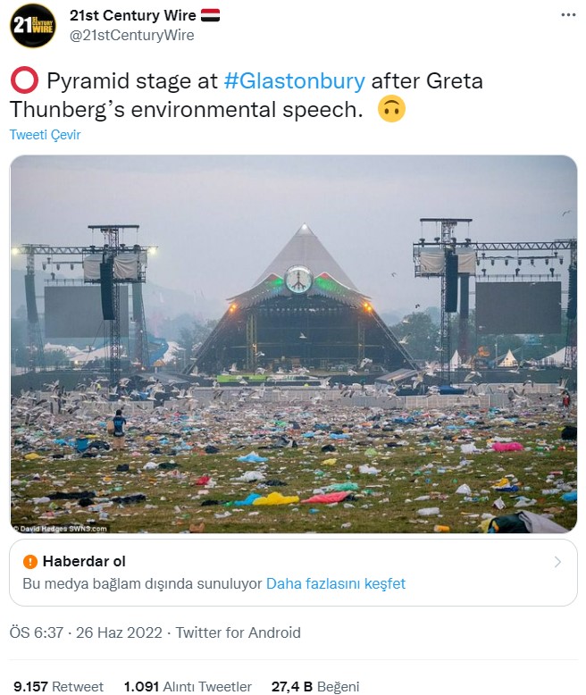 Fotoğrafların İklim Aktivisti Greta Thunberg’in Glastonbury Festivali’nde yaptığı konuşma sonrasında çekildiği iddiası