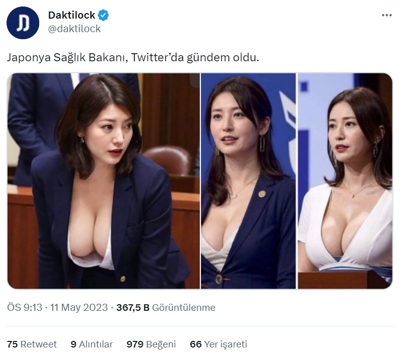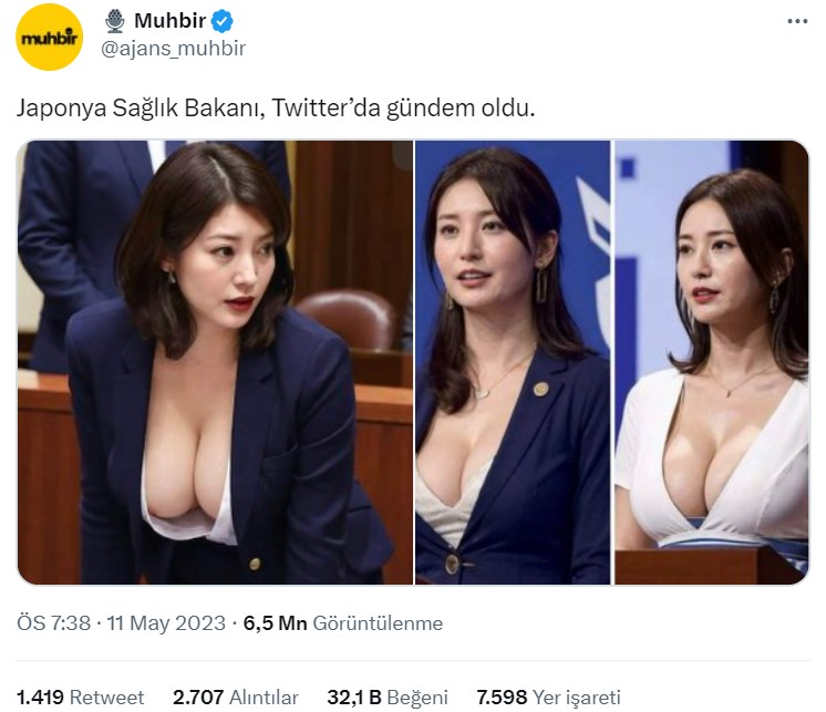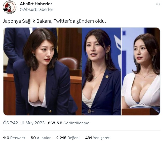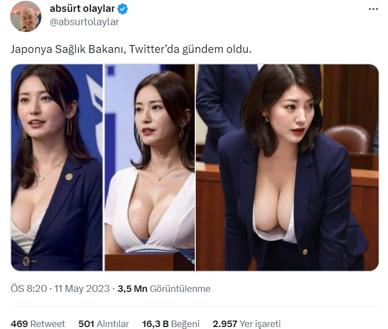 Sosyal medyada paylaşımda olan bir gönderi kısa sürede gündem oldu ve etkileşim aldı. Söz konusu paylaşımlarda dekolteli fotoğrafları olduğu görülen bir kadının Japonya Sağlık Bakanı olduğu iddia edildi.