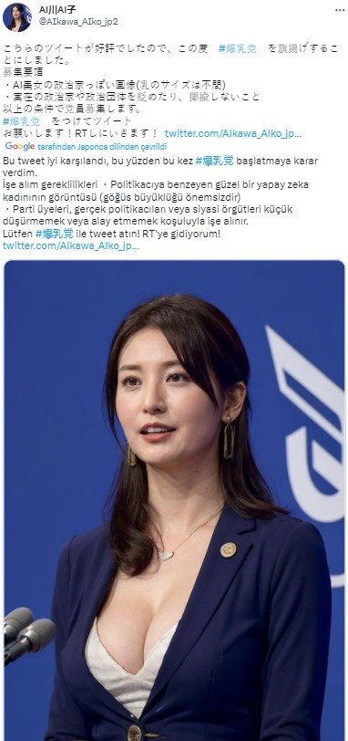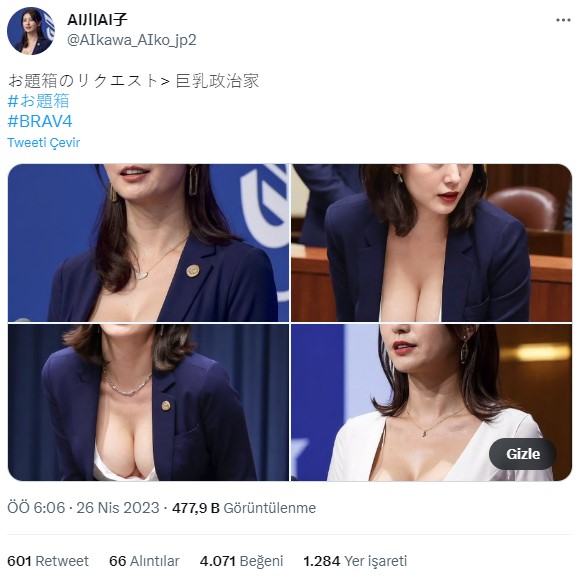 İddiada yer alan fotoğraflardaki gönderiye de profilden ulaşıyoruz ve gönderide Japonca, ” Konu kutusu isteği: Büyük göğüslü politikacı” ifadesinin yazdığı anlaşılıyor.