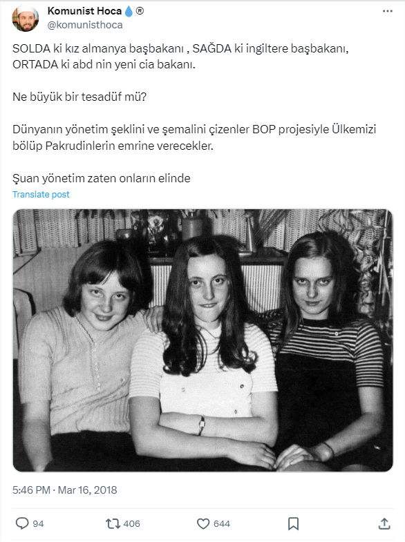 Geçtiğimiz günlerde Instagram’da paylaşılan bir fotoğraf ile Almanya Eski Başbakanı Angela Merkel, İngiltere Eski Başbakanı Theresa May ve CIA Eski Başkanı Gina Haspel’in çocukluklarında aynı okula gittikleri ve aynı karede görüntülendikleri iddia edildi.