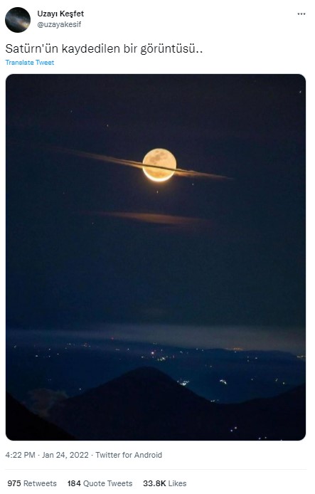 - Bilimsel olarak Satürn’ün çıplak gözle bu kadar yakın görünmesi mümkün değil.
