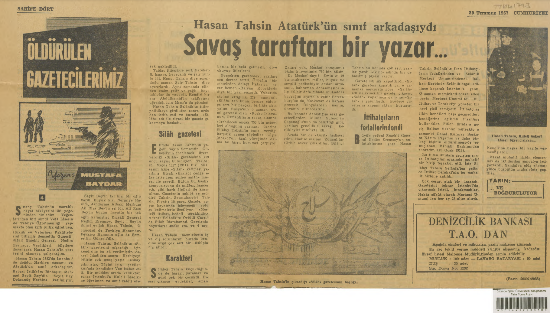 Silah gazetesi üzerine hazırlanan yüksek lisans tezine göre fotoğraftaki kişi: “Silahçı Hasan Tahsin”