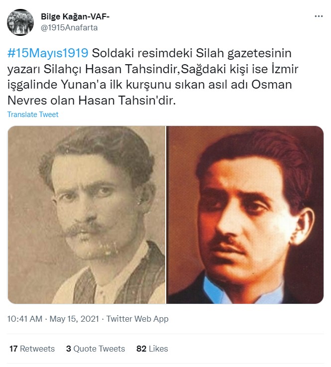 - Fotoğraftaki kişi, Hasan Tahsin mahlaslı gazeteci Osman Nevres değil, Silahçı mahlaslı Hasan Tahsin’dir.