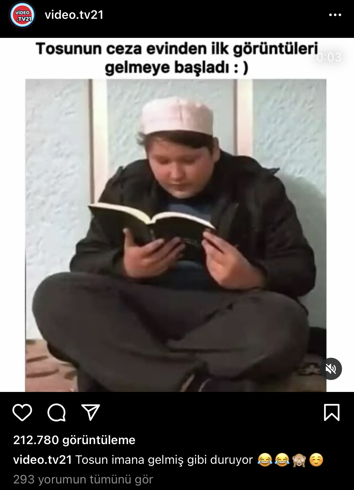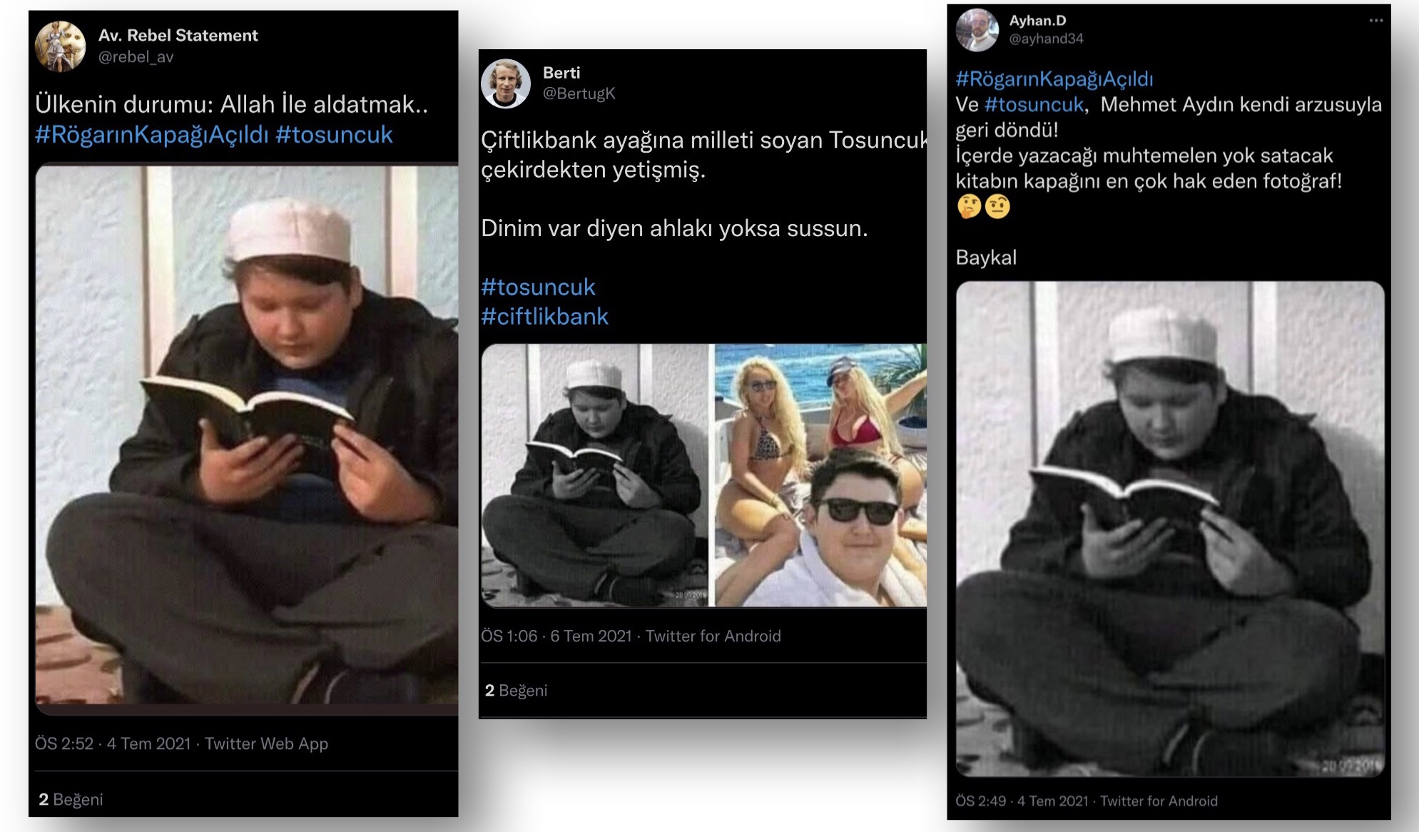Instagram’da @video.tv.20 adlı hesabından 06.07.2021 tarihinde Tosuncuk lakaplı Çiftlik Bank dolandırıcılığı suçuyla tutuklanan Mehmet Aydın’ın hapishaneden ilk görüntüsü olduğu iddia edilen bir fotoğraf paylaşıldı. Sosyal medya platformlarında gündeme taşınan iddia kaynağı fotoğraf yoğun ilgi görerek yüksek oranda etkileşim aldı. Mizah amacıyla da paylaşıldığı düşünülen görsel sosyal medya kullanıcılarından olumlu olumsuz birçok yorum aldı.