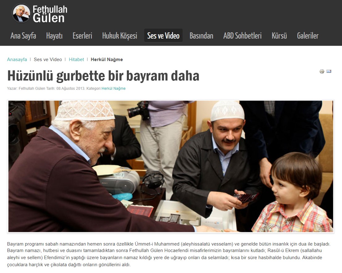 Gülen’a ait olan bir web sitesinde söz konusu fotoğrafların 2013’te Ramazan Bayramı’nda çekildiğine dair bazı bilgilere rastlıyoruz. Web sayfasına normal yollarla erişilemese de, arşiv servislerinden tamamını görmek mümkün.