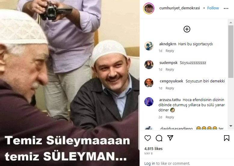 İddiaya konu olan fotoğrafta FETÖ lideri Fethullah Gülen ile yan yana sohbet eden kişinin İçişleri Bakanı Süleyman Soylu olduğu öne sürülmüştü.
