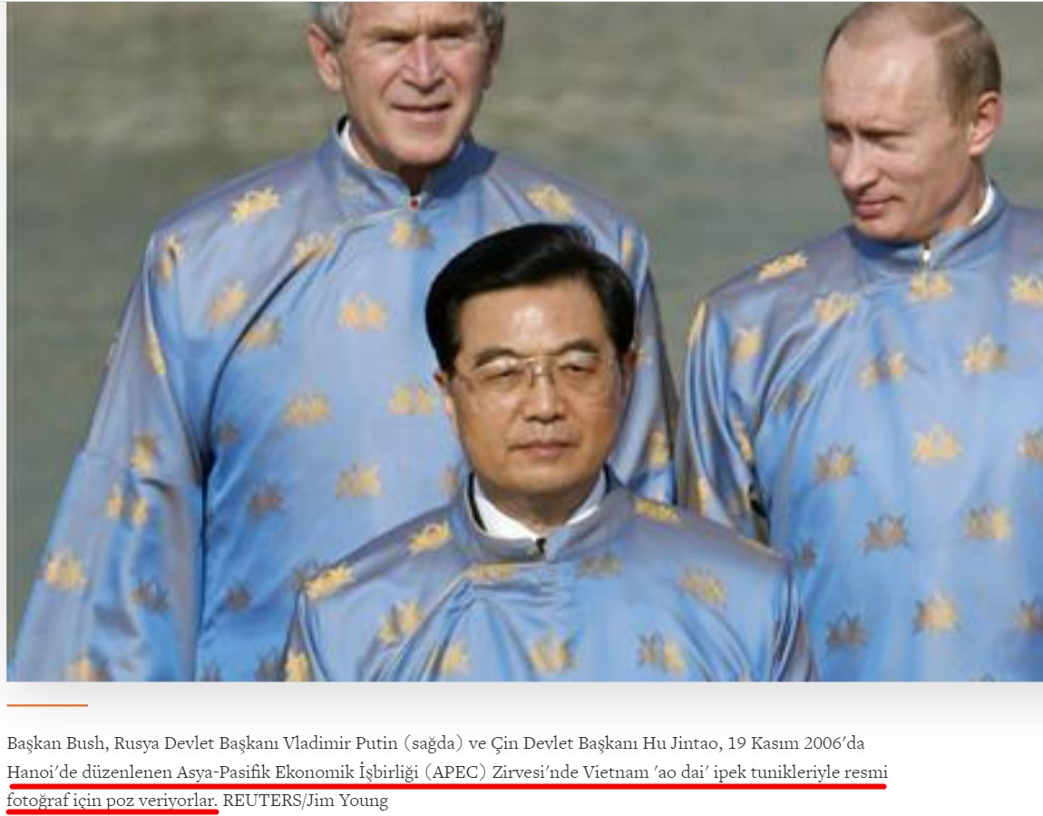 - 2006 yılında Vietnam’ın başkenti Hanoi’de gerçekleşen APEC (Asya-Pasifik Ekonomik İşbirliği) zirvesinde çekilen bu fotoğrafta dünya liderleri, Vietnam’ın geleneksel giysisi olan Áo Dài’yi giymiş.