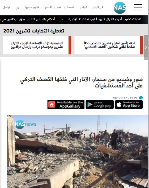 Söz konusu bebek fotoğrafı, bu kaynaklarda verilen görsellerden biri. Irak kaynaklarından Nas News’in sitesinde “Sincar’dan fotoğraf ve video: Türk bombardımanının bir hastane üzerindeki etkileri” başlığı altında bu görselin yer aldığı görülebiliyor.