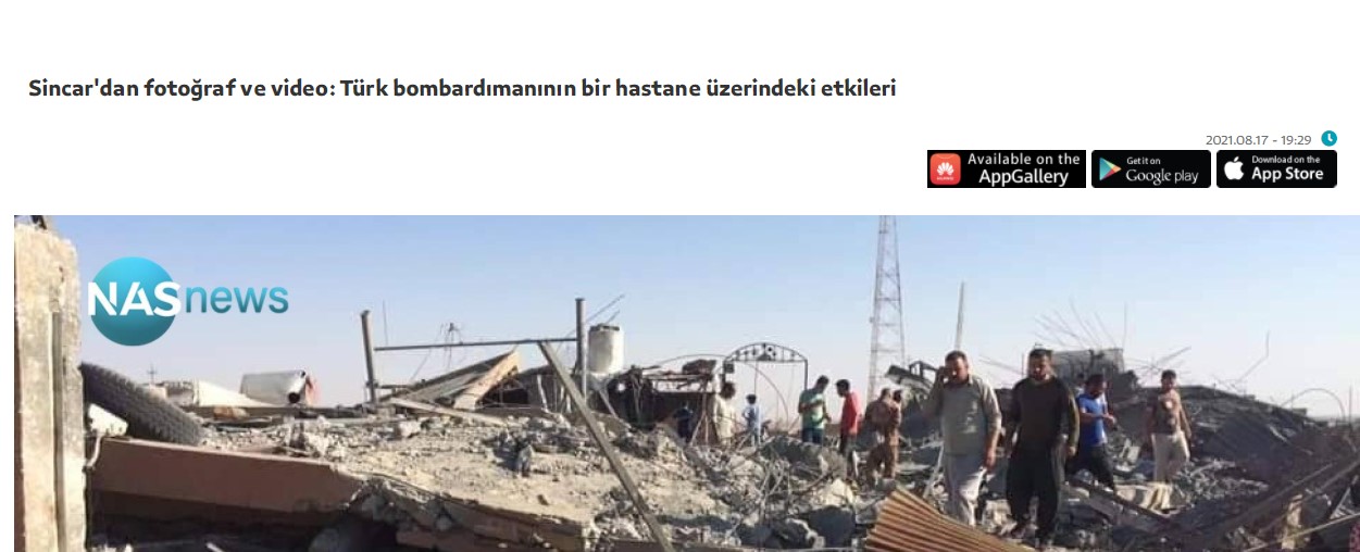İddiaları araştırdığımızda, TSK’nın Sincar bölgesinde bir hastaneyi bombalandığı iddiasını haberleştiren yabancı mecraların kaynak edinildiğini anladık.