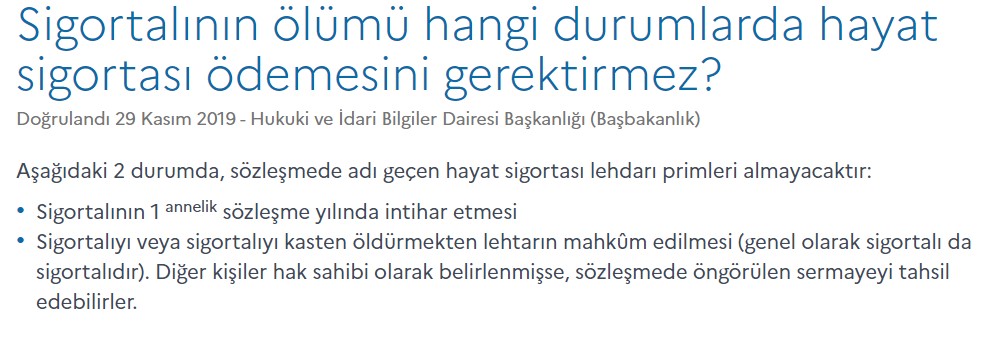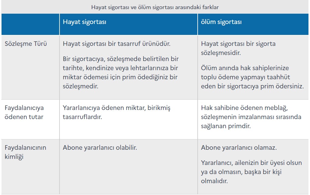 Ölüm sigortasında ise ödenen primler sigortalıya ödenmez. Sigortalı kişi vefat ettiğinde sigortalının yakınlarına ya da daha önce belirlenen kişilere ödeme yapılır. Ölüm sigortasında bu primlerin ödeneceği kişi tarafından öldürüldüğü kanıtlanırsa veya kişi sigortayı başlattıktan sonra bir yıl içinde intihar ederse bu sigorta ödemesi yapılmaz.