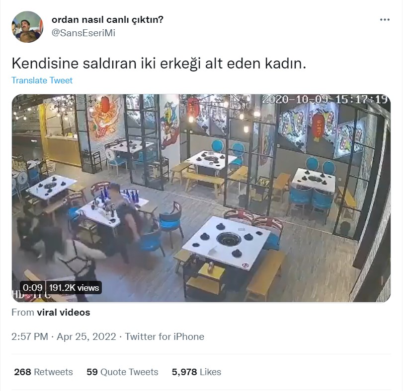 Geçtiğimiz aylarda sosyal medyada pek çok etkileşim alan, bir kadın garsonun iki erkek müşteriyi dövdüğünü gösteren video yeniden gündeme geldi.
