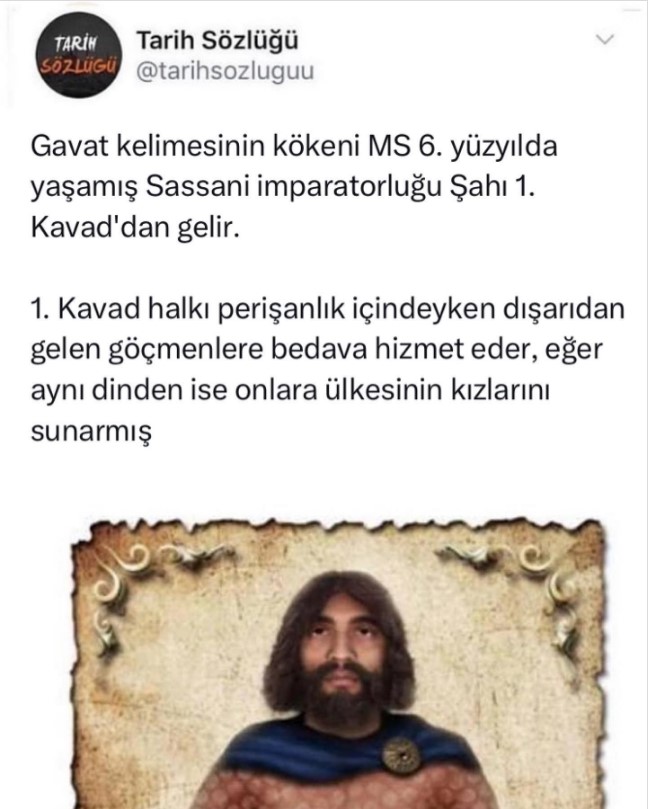 Sosyal medyada zaman zaman yayılıma giren bir paylaşıma göre “gavat” kelimesinin kökeni Sasani İmparatorluğu’nun Şahı 1. Kavat’a dayanıyor. Söz konusu iddiayı inceledik.