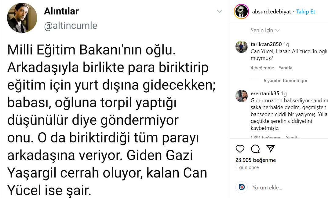 Güler Yücel’in açıklamaları da iddiayı yanlışlar nitelikte. Hasan Ali Yücel, oğlu Can Yücel’in yurt dışına çıkmasına dönemin siyasi koşullarından dolayı istememiş. Can Yücel o dönem yakın arkadaşı Gazi Yaşargil’e harçlıklarını vermiş olabilir ancak Yaşargil kendi ailesinin imkanları dahilinde yurt dışına gittiğini açıklamış. Daha sonrasında Can Yücel’in Cambridge’e eğitime gittiği de biliniyor.