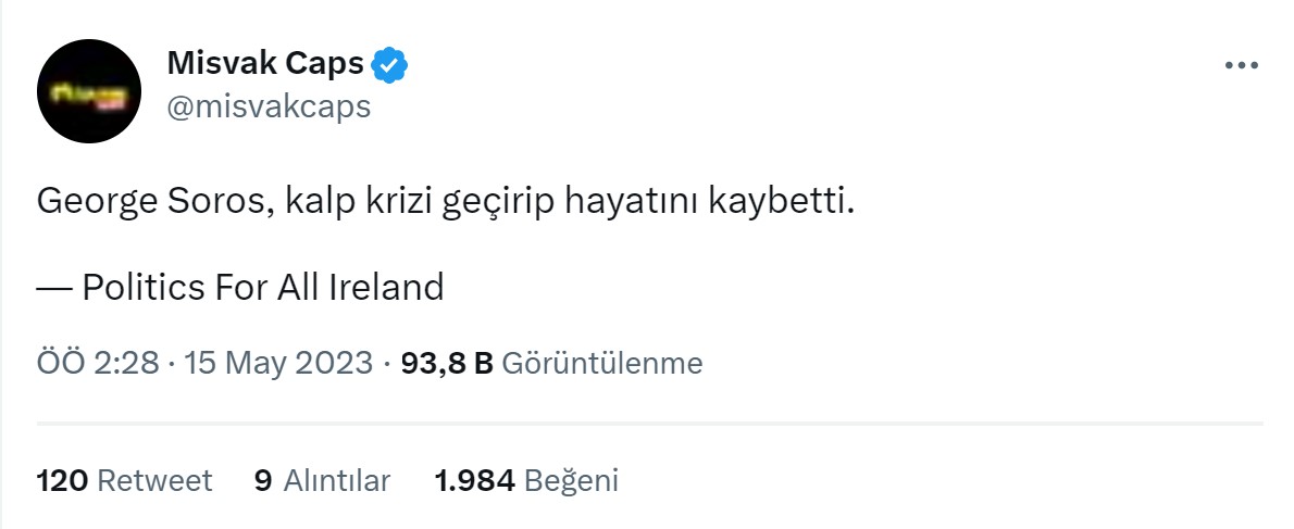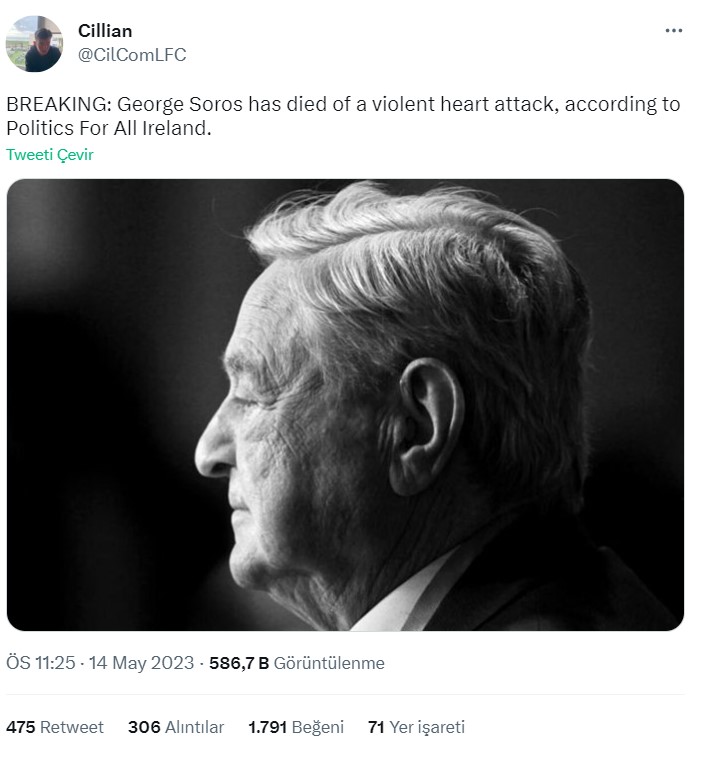 - Resmi kaynaklarda George Soros’un öldüğüne dair bir haber bulunmuyor.