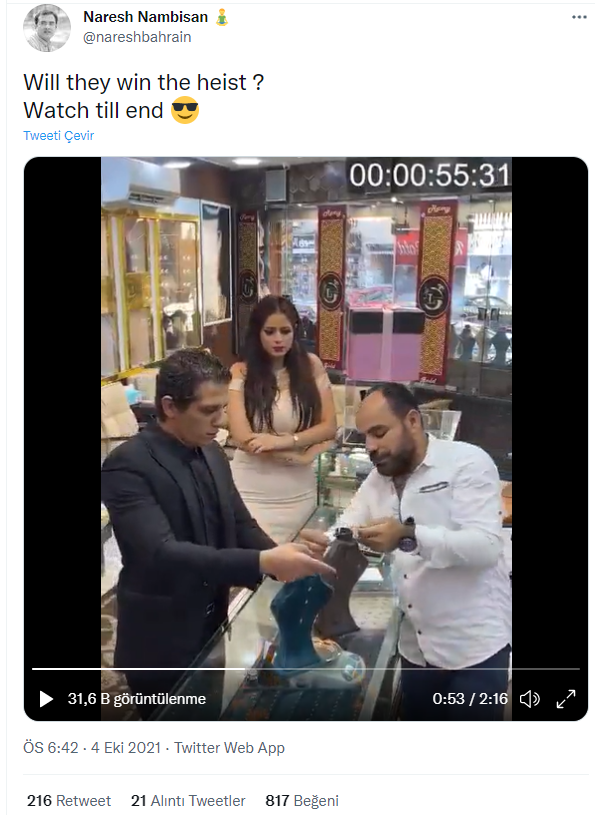 - Videodaki genç kadının yer aldığı, bir de kuyumcu soygunu videosu var. Al-Marsy bu videoyu da sosyal medya hesabından paylaşarak kendisinin, eğlence amaçlı kurguladığını söyledi.
