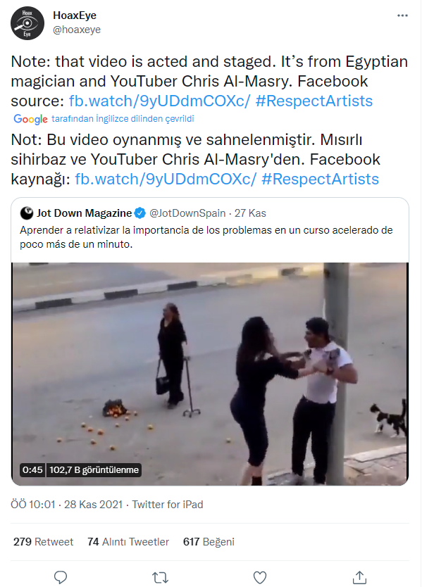 Videoyu, Mısırlı YouTuber ve sihirbaz Chris Al-Masry, 2 Ekim’de Facebook hesabında paylaşmış. YouTuber’ın videoya “Akıllı çalıştığınızda, birileri daha akıllıdır. Senden daha fazla… Bu video, hazırlanmış dramatik sahneler içermektedir. Eğlence amaçlıdır. Farkındalık yaymak için ilerleyin” açıklamasında bulunduğu görülüyor.