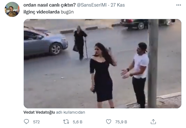 Birkaç haftadır sosyal medyanın gündeminde yer Twitter’da @SansEseriMİ adlı hesabın paylaştığı, on birlerce beğeni alan bir video şaşkınlık uyandırıyor. Videoda, yol kenarında bir kadın ve erkek kavga ederken o esnada yolda yürüyen yaşlı bir kadının elinden meyve dolu poşetin düşmesiyle, hayret verici olaylar gelişiyor. Yoğun ilgi gören bu video hakkında kimi sosyal medya kullanıcıları, yaşananların mucize olduğunu düşünerek kavga eden çifti duyarsızlıkla suçluyor. Fakat videoya şüphe ile yaklaşanlar da var. Tüm detayları ile söz konusu videoyu araştırdık. Peki videoda yaşananlar gerçek olabilir mi?