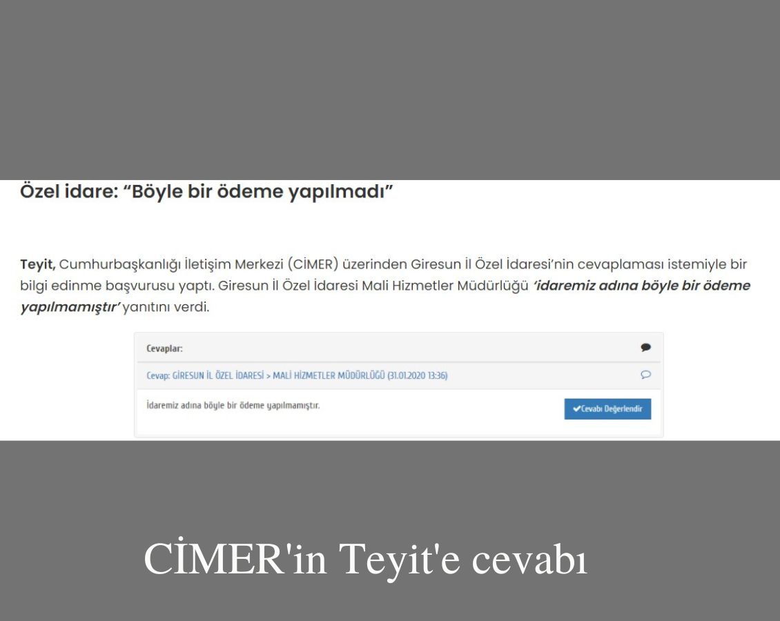Daha önce Teyit CİMER üzerinden bu devir için ödeme yapılıp yapılmadığıyla alakalı Giresun İl Özel İdaresi’ne bilgi edinme başvurusu yapmıştı. Cevap olarak ise böyle bir ödemenin yapılmadığı oldu. (5.Görsel)
