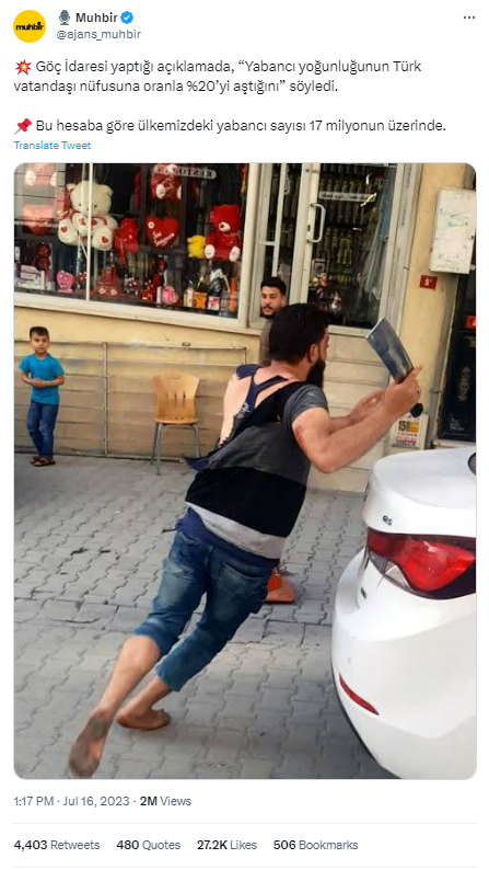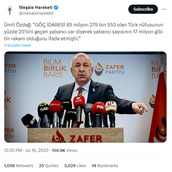 - Göç İdaresi Başkanlığı’nın 16 Temmuz 2023’te yaptığı basın açıklamasında, Türkiye’deki yabancı nüfusun toplam nüfusa oranının %20 olduğu söylenmiyor.
