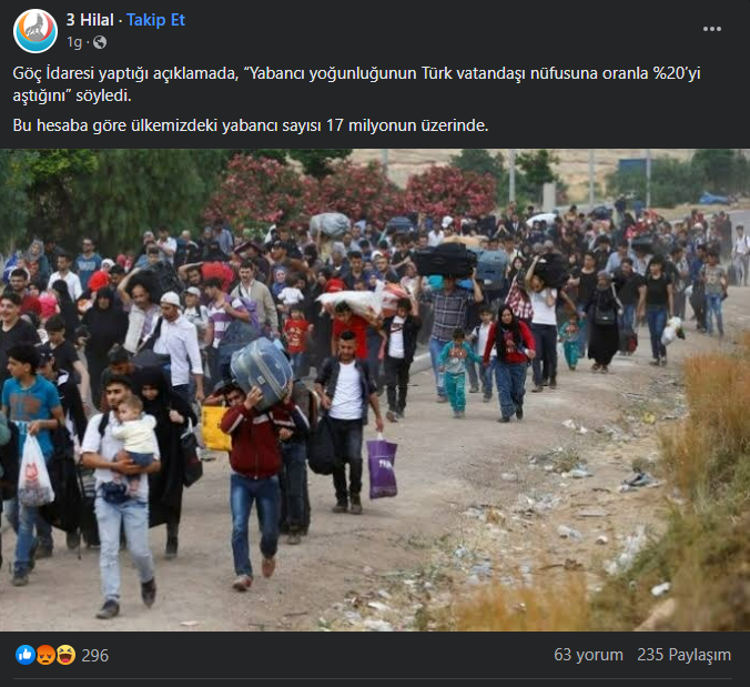 Göç İdaresi Başkanlığı’na göre Türkiye’deki yabancı nüfusun 17 milyon olduğu iddiası