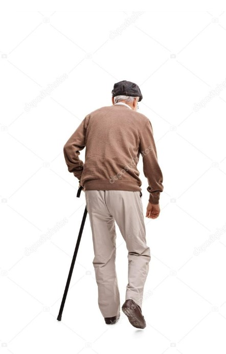 “Eski siyah bir sopa ile yürüyen adam” açıklamalı stok görseldeki kişi figürünün elindeki bastonun yok edilerek, Biden’ın yerine eklendiği görülüyor.