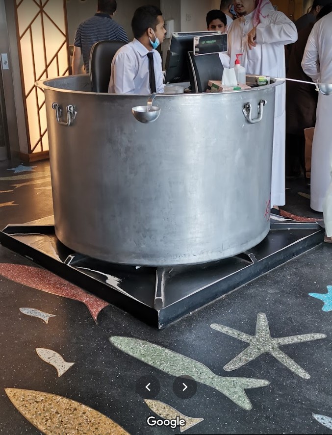Fotoğrafta görülen dev kazan şeklindeki kasa, Gaziantep’ten değil. Dekoratif amaçlı kazan şeklindeki kasa, Kuveyt’te bir restoranda bulunuyor