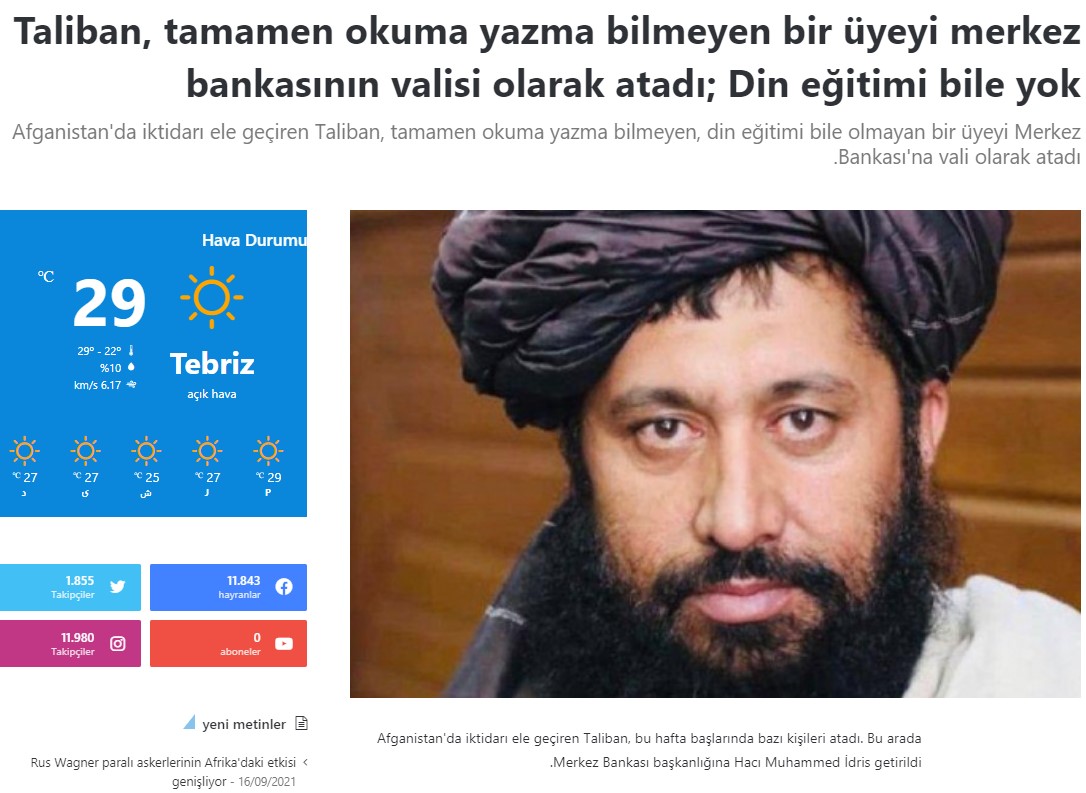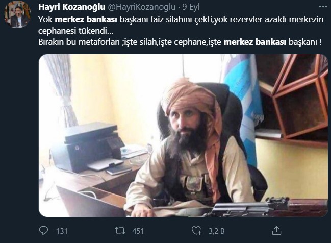 Afganistan’da Taliban’ın yönetime el koymasıyla başlayan politik süreç, uzun süredir dünya basınında yer bulurken; kimi sosyal medya kullanıcılarının ve kurumsal haber platformlarının, bazı açıklamalar ve iddialarla servis edilen paylaşımları, gerçek birer habermiş gibi ele almalarıyla sıklıkla karşılaşmaktayız. Geçtiğimiz günlerde Twitter’da paylaşılan bir gönderide, elinde otomatik tüfekle oturan bir kişinin Taliban’ın atadığı Merkez Bankası Başkanı olduğu öne sürülmüştü.