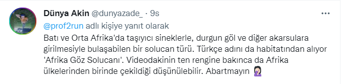 Görüntülerde bir göz tabakası üzerinde hareket ettiği görülen solucanımsı bir canlı görülüyor. Paylaşım, Twitter’da yüzlerce beğeni ve retweet aldı. Gelen yorumlardan bazılarını yukarıda sizinle paylaştık.