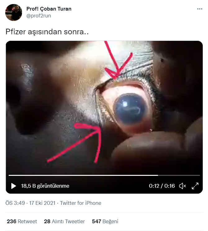 Covid-19’a yönelik aşılama çalışmaları tüm dünyada devam ederken sosyal medyada bu aşılara ilişkin çeşitli iddialar paylaşılmaya devam ediliyor. Bu iddialardan biri de Pfizer/Biontech aşısı ile ilgiliydi. Bir sosyal medya kullanıcısı ‘Pfizer aşısından sonra..” başlığı ile bir video paylaştı.