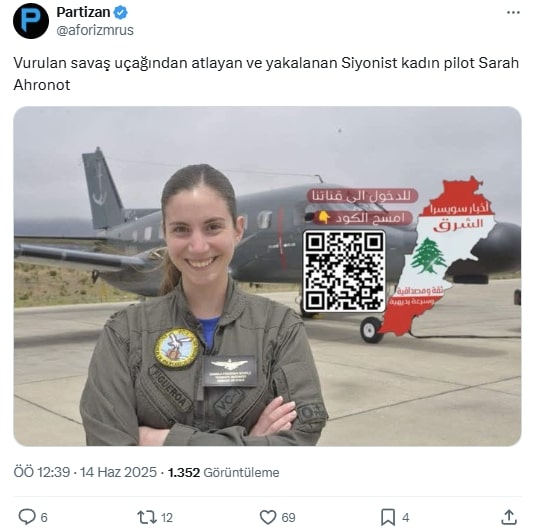 İran’ın uçağını düşürüp İsrailli kadın pilot Sarah Ahronot’u yakaladığı iddiasıyla paylaşılan fotoğraf Şili donanmasının ilk kadın donanma pilotu Daniela Figueroa Scholz’a ait.