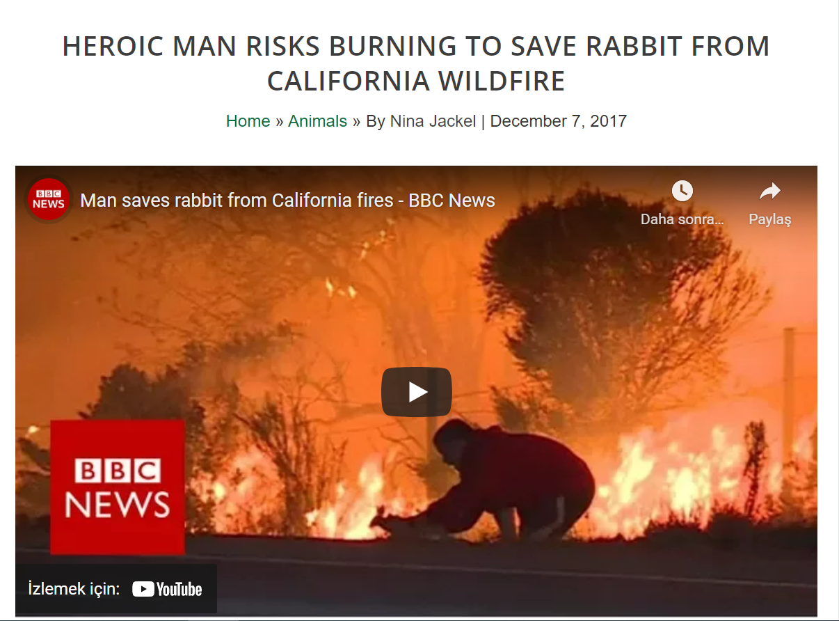 Ulaştığımız birçok kaynak ve geçmişe dair bulduğumuz birçok haber dökümanı orman yangının içinden kurtarılan tavşan videosunun Türkiye’ye değil Kalifornia’ya ait olduğunu kesin olarak gösteriyor.