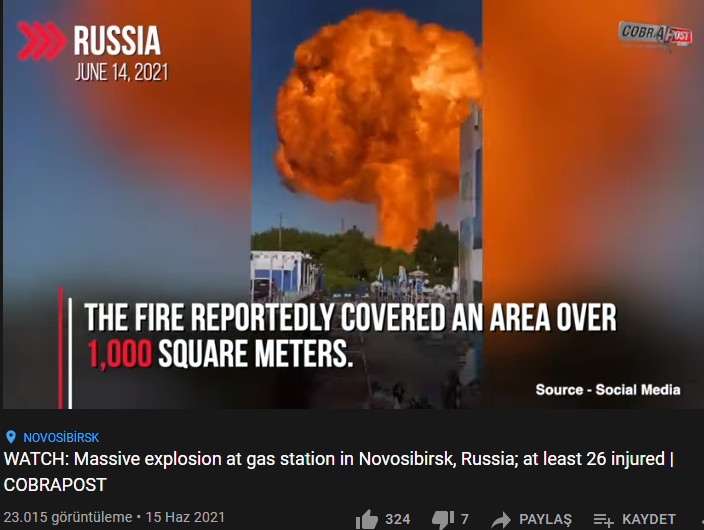 Bu kez videoda yaşanan yangın hadisesinin detaylarını öğrenmek için araştırmalar yaptığımızda Rusya’nın Novosibirsk şehrinde bir benzin istasyonunun LPG depolama kısmında yaşanan patlama ve çıkan yangının görüntüleri olduğu bilgisine ulaştık.