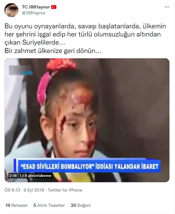 2018 yılından bu yana sosyal medyada çokça paylaşılan bir sahne arkası videosu hakkında iki farklı iddia ortaya atılıyor. Videodaki görüntüler sahne arkasını gösteriyor. Videoda figüranlara makyaj yapılıyor. Bu figüranlar bir saldırı sonrası sahnesi gibi bir sahneyi canlandırıyorlar. Makyaj da bu figüranların saldırıdan kaynaklı yaralarını göstermek amacıyla yapılıyor. İddiaları ortaya atanlar, bu sahne arkası videosunun dezenformasyon ve kara propaganda yapmak için oluşturulan bir kurgunun sahne arkası videosu olduğunu iddia ediyorlar. Yani iddialara göre, videoda yer alan kişilere yaralı süsü veriliyor ve bu ajitasyon sayesinde halkın desteğini kazanıyorlar.