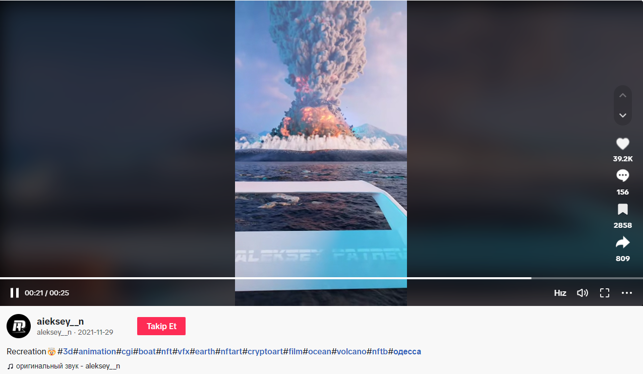 Ayrıca video 2021 yılında, kullanıcının TikTok hesabından da paylaşılmış. TikTok videosunun başlığında ise #3d, #cgi, #animation gibi etiketler kullanılmış.