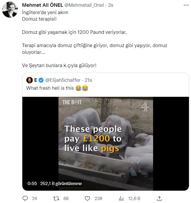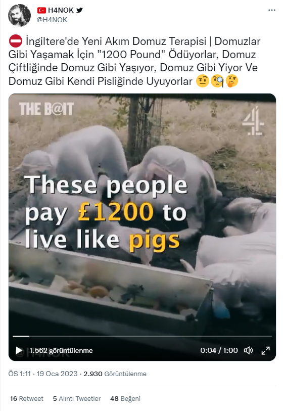 Sosyal medyada gün içerisinde bir tweete denk geldik. Tweet’teki dahili videoda, domuz kostümü giyen ve domuza benzer hareket eden bir grup insan görülüyor. Kullanıcı paylaştığı videolu tweet’te şu ifadelere yer vermiş: