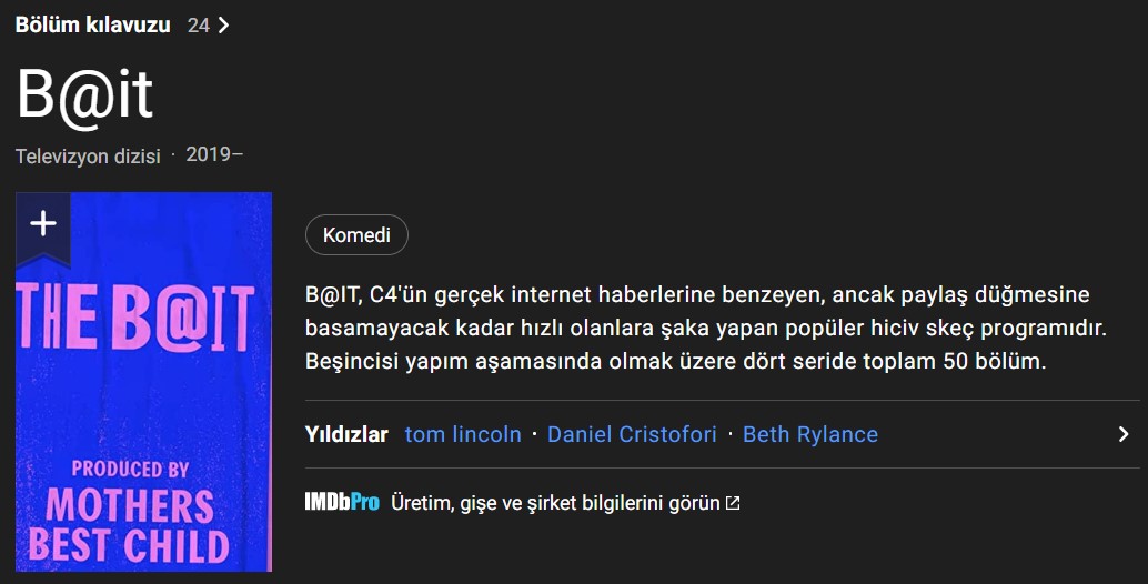 The B@it, Birleşik Krallık merkezli bir haber kanalı olan Channel 4’un yayınladığı haberleri dalga geçer bir uslupla skeç haline getiren ve 2019’dan bu yana bölüm yayınlayan bir absürt hiciv programı.