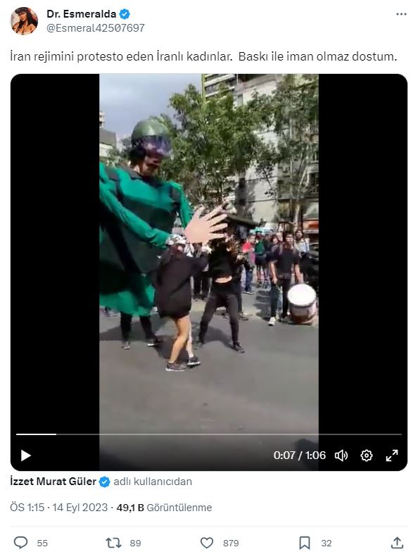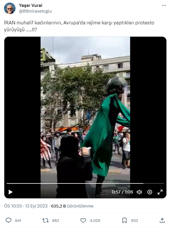 Sosyal medyada bir yürüyüş görüntüsü paylaşıldı. Görüntülerde çıplak kadınların dev kuklalara karşı tiyatral bir şekilde eylem yaptığı görülüyor. Videodaki kadınların İranlı olduğu ve mevcut İran rejiminie karşı protesto gerçekleştirdiği iddia edildi.