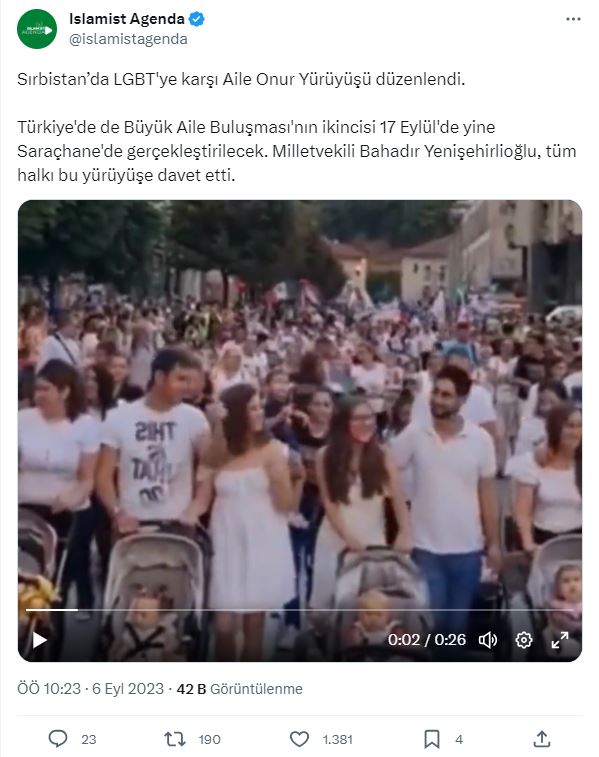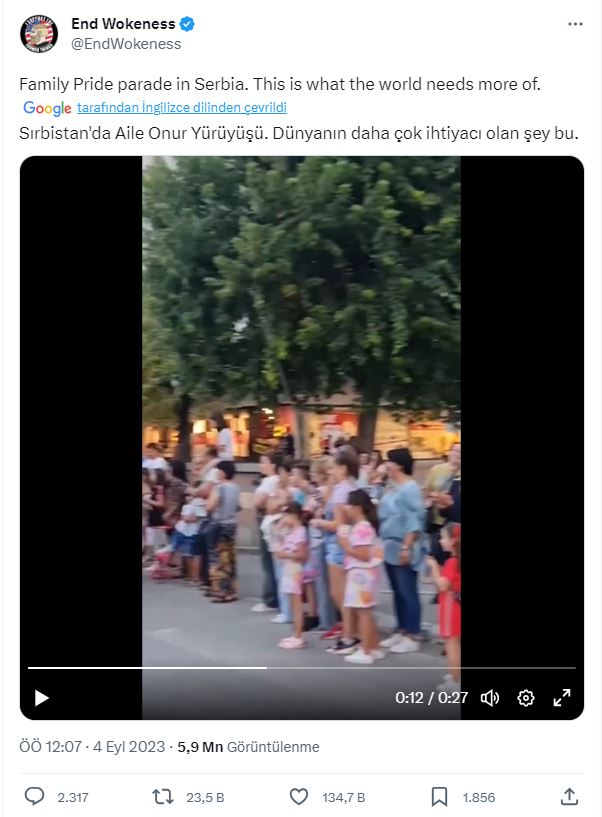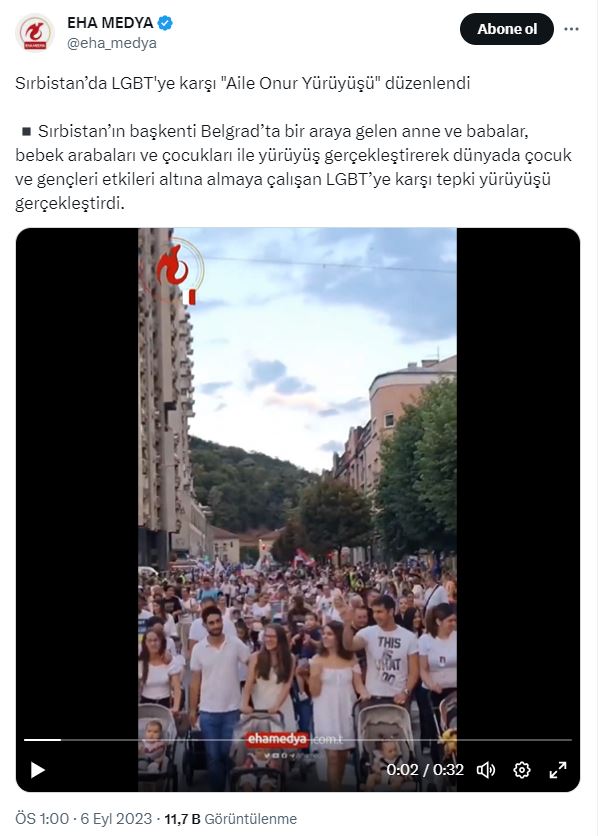 Sosyal medyada sıklıkla hedef gösterilen LGBTİ+ bireyler hakkında bir iddia daha ortaya atıldı. Paylaşılan farklı videolarda Sırbistan’ın başkenti Belgrad’ta, çocuklu ailelerin LGBTİ+ karşıtı yürüyüş gerçekleştirdiği iddia edildi. Farklı açılardan çekilmiş görüntülerdeki kişilerin ne için toplandığını ve yürüyüşün ne amaçla yapıldığını araştırdık.