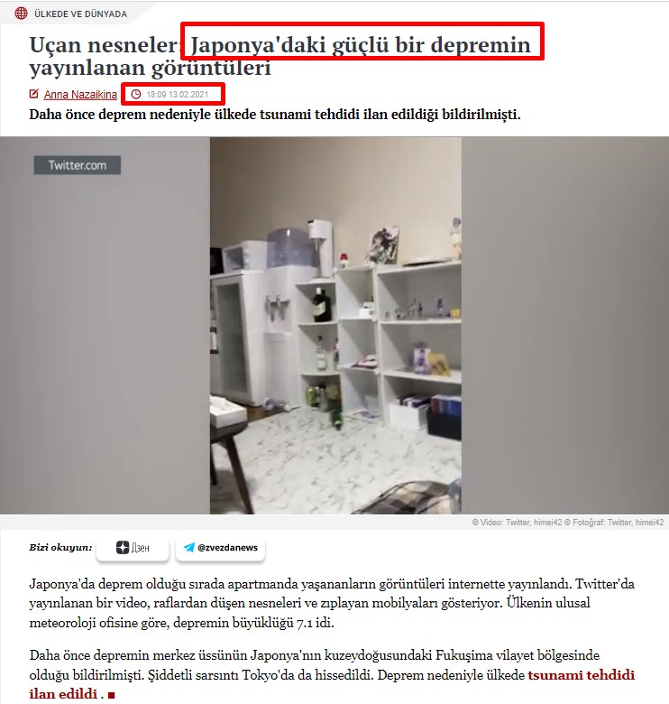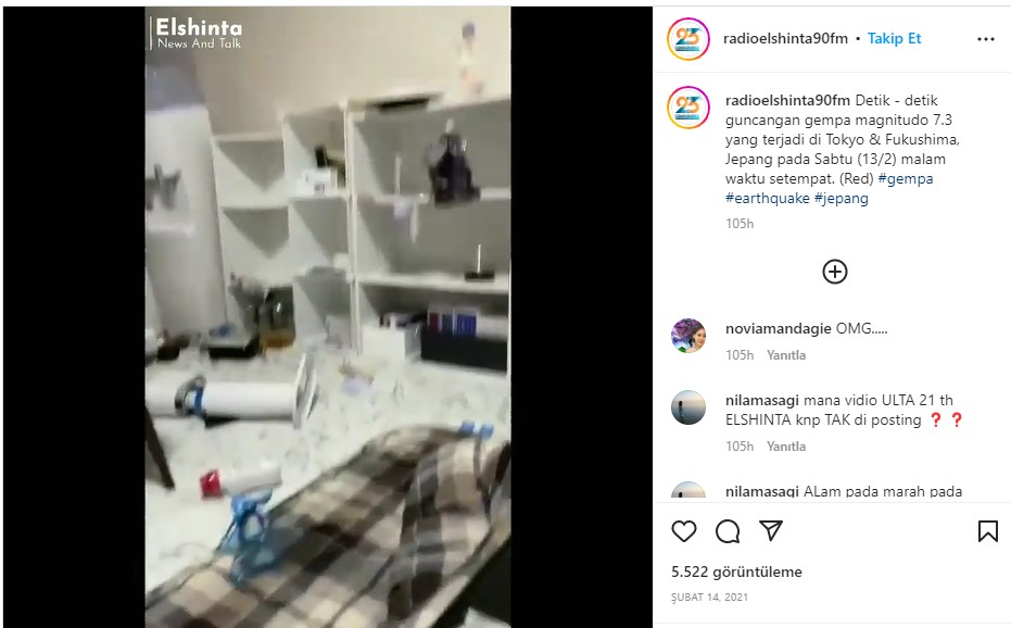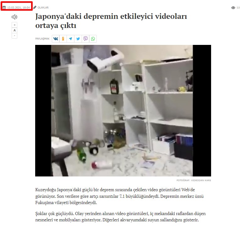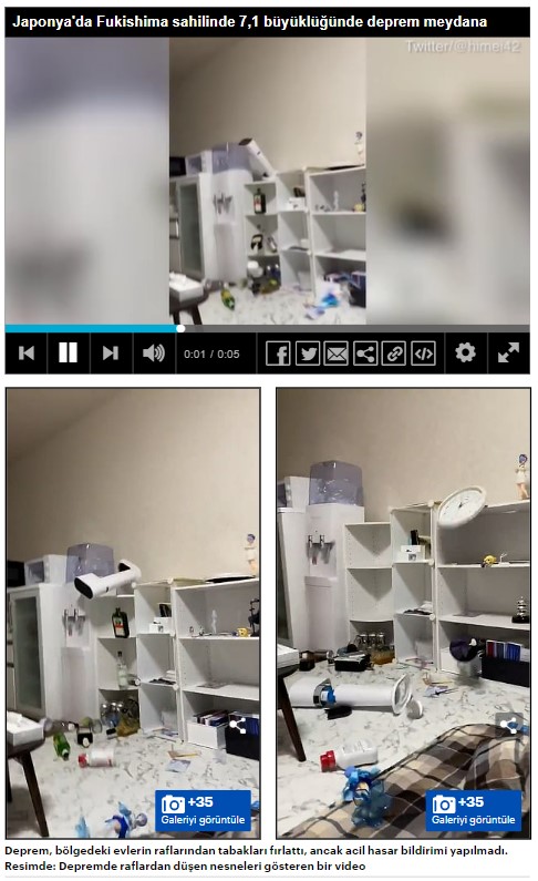 - Video, 2021 yılında da Japonya’da meydana gelen depremin görüntüleri olarak paylaşılmış.