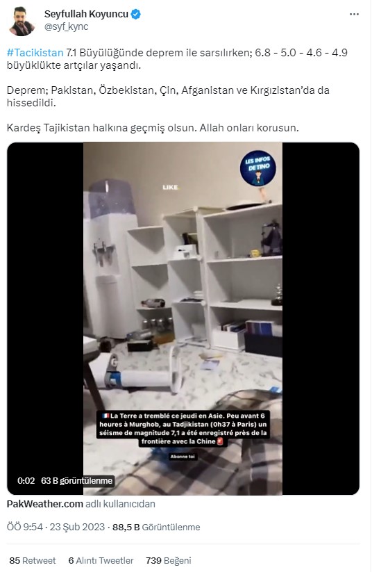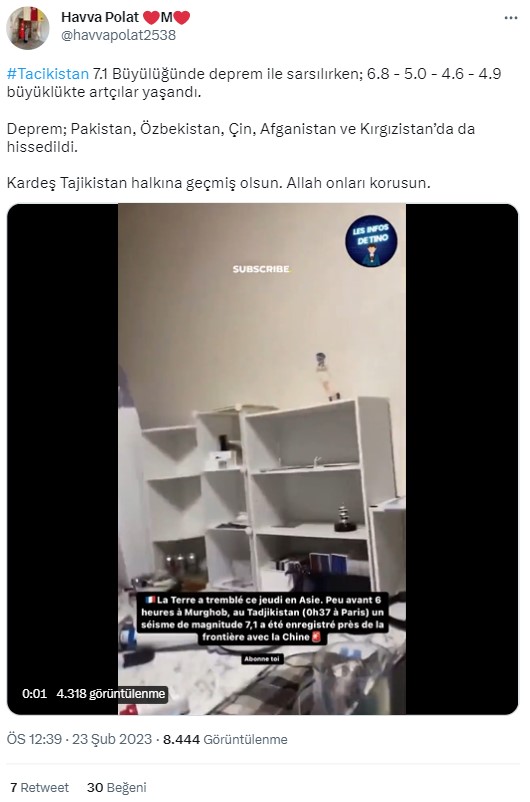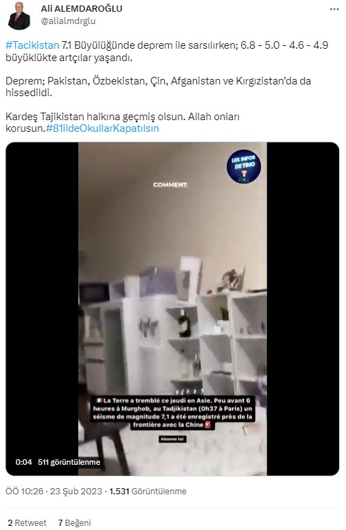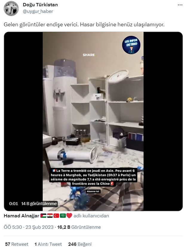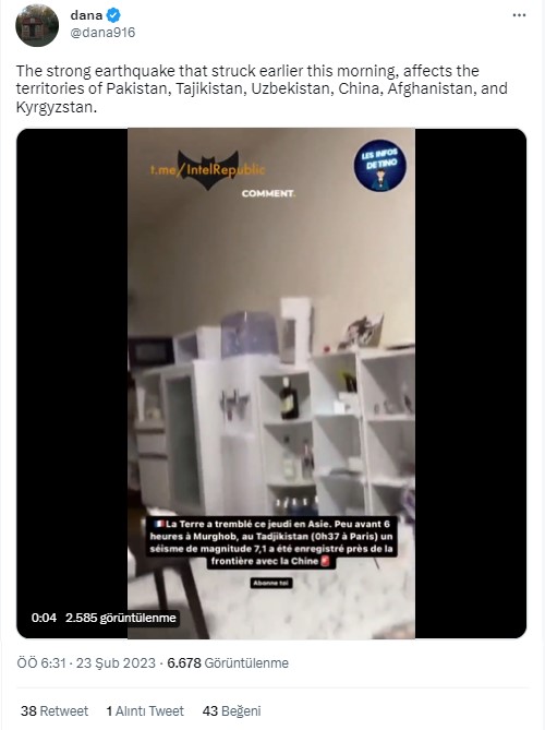 - Görüntülerin Tacikistan’ın Çin sınırında meydana gelen depremle bir bağlantısı yok.