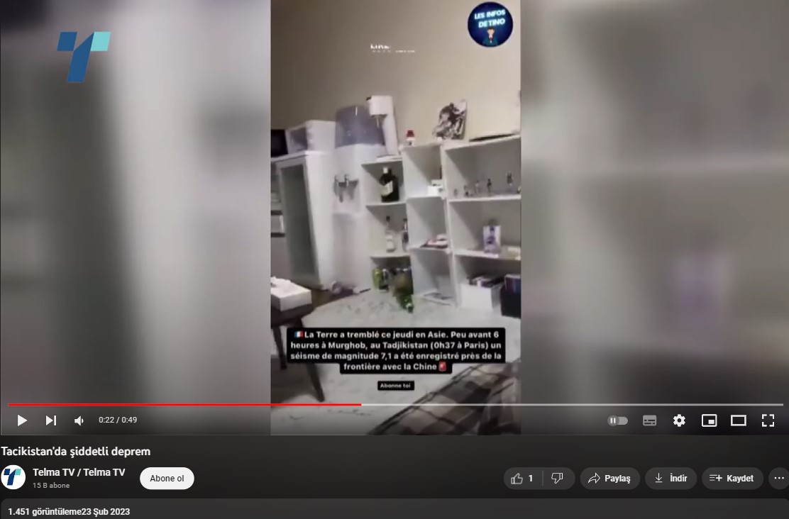 Yaşanan depremin ardından sosyal medyada paylaşımda olan bir videonun Tacikistan depreminden olduğu iddia edildi.