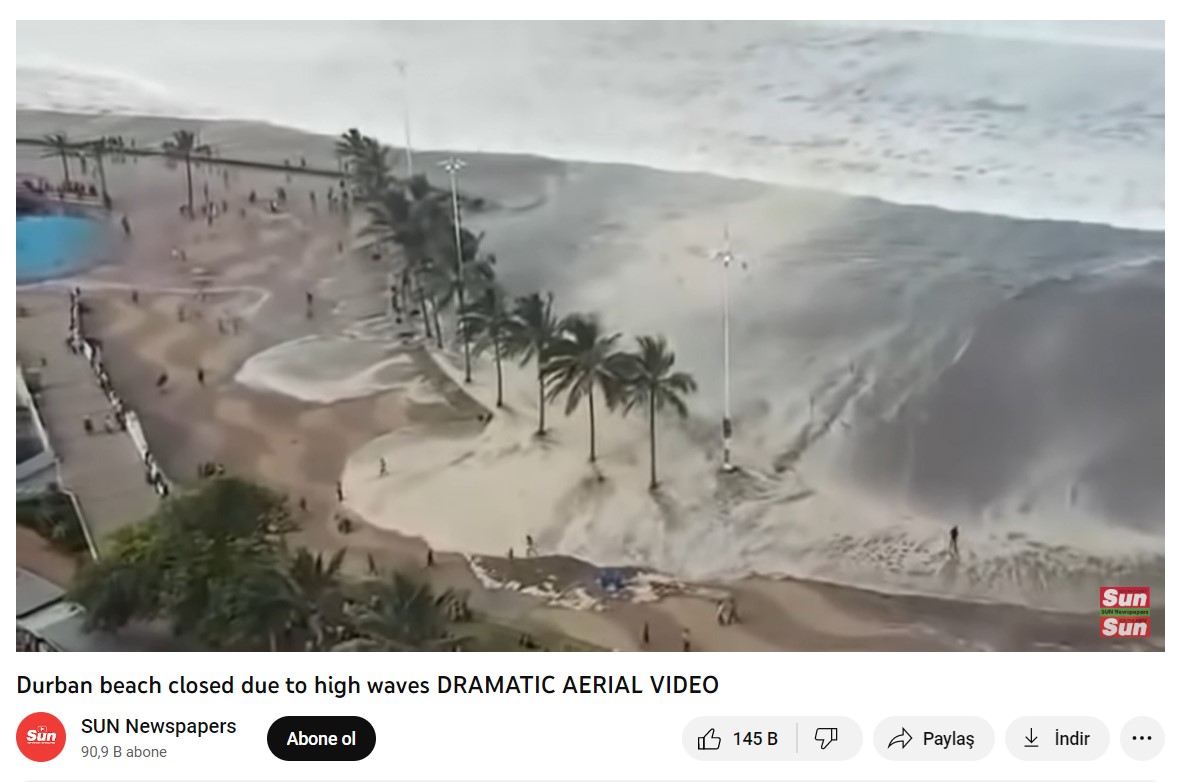 Cape Town’da bulunan Durban plajı yüksek hızlı rüzgar nedeniyle tehlikeli boyutlara varan dalgalar oluşturduğu için yetkililer plajı kapatıp insanları uyarmışlar.