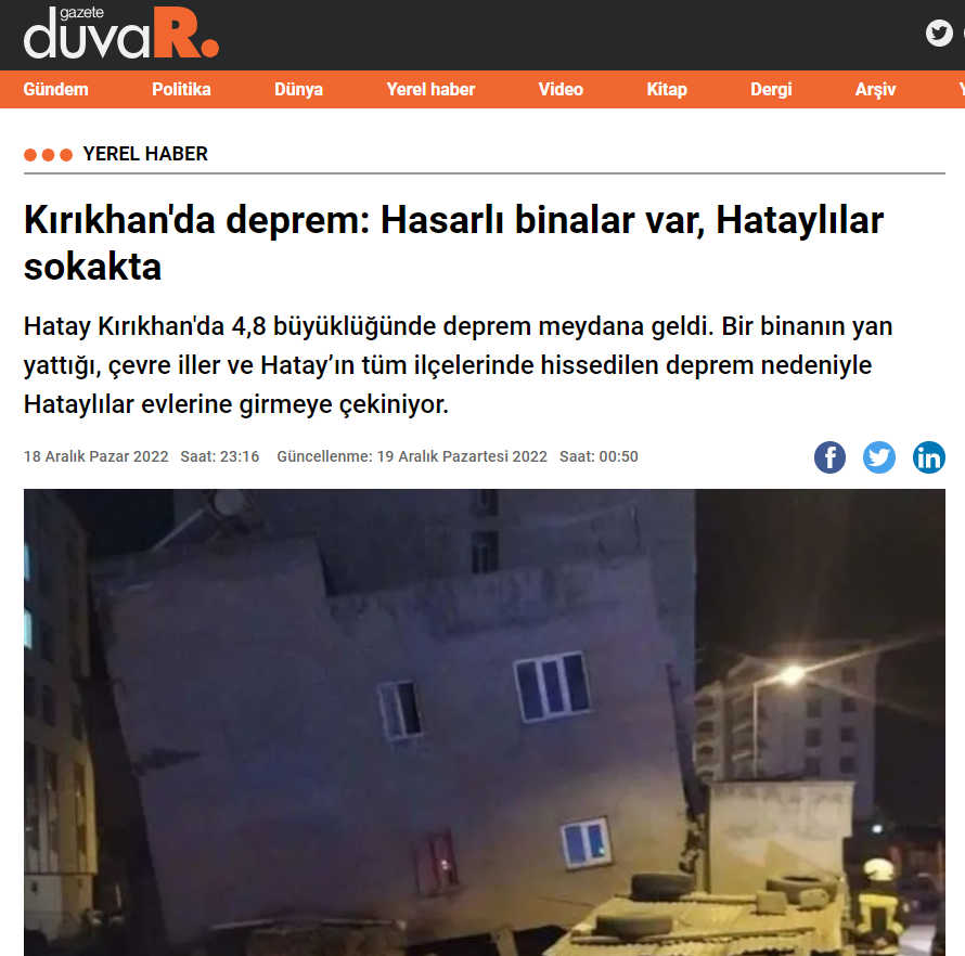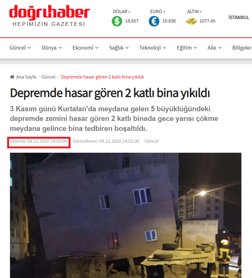 Web sitelerinin haberlerinden yola çıkarak görüntünün 3 Aralık 2020 tarihinde Siirt’in Kurtalan ilçesinde meydana gelen deprem sonrasında çekildiği anlaşılıyor. Habere göre depremde zemin katı hasar gören bina geriye doğru çöktüğü için kontrollü bir şekilde yıkılmış.