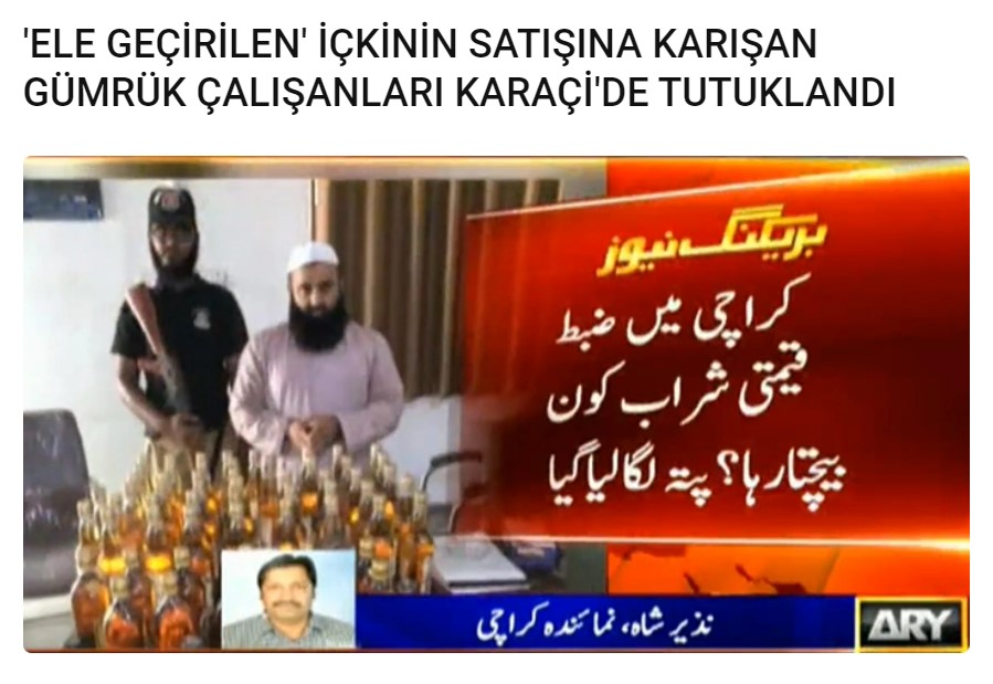 Tersine görsel arama neticesinde, sosyal medya paylaşımlarının yanı sıra fotoğrafın kullanıldığı haberler de çıkıyor. Bu haberler, Pakistan’ın Karaçi şehrinde ele geçirdikleri içkileri satma suçuyla tutuklanan gümrük çalışanlarından bahsediyor.