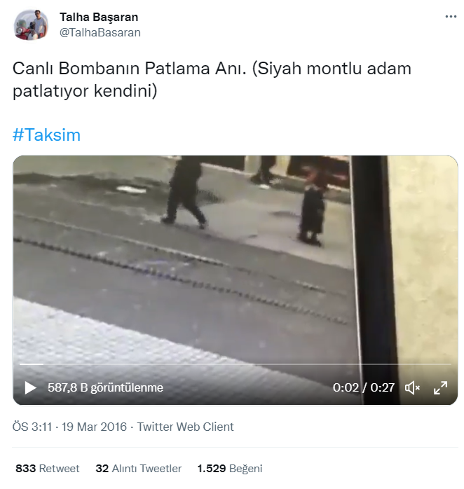 - Görüntü, 19 Mart 2016 yılında İstiklal Caddesi’nde gerçekleşen saldırı anında kaydedilmiş.